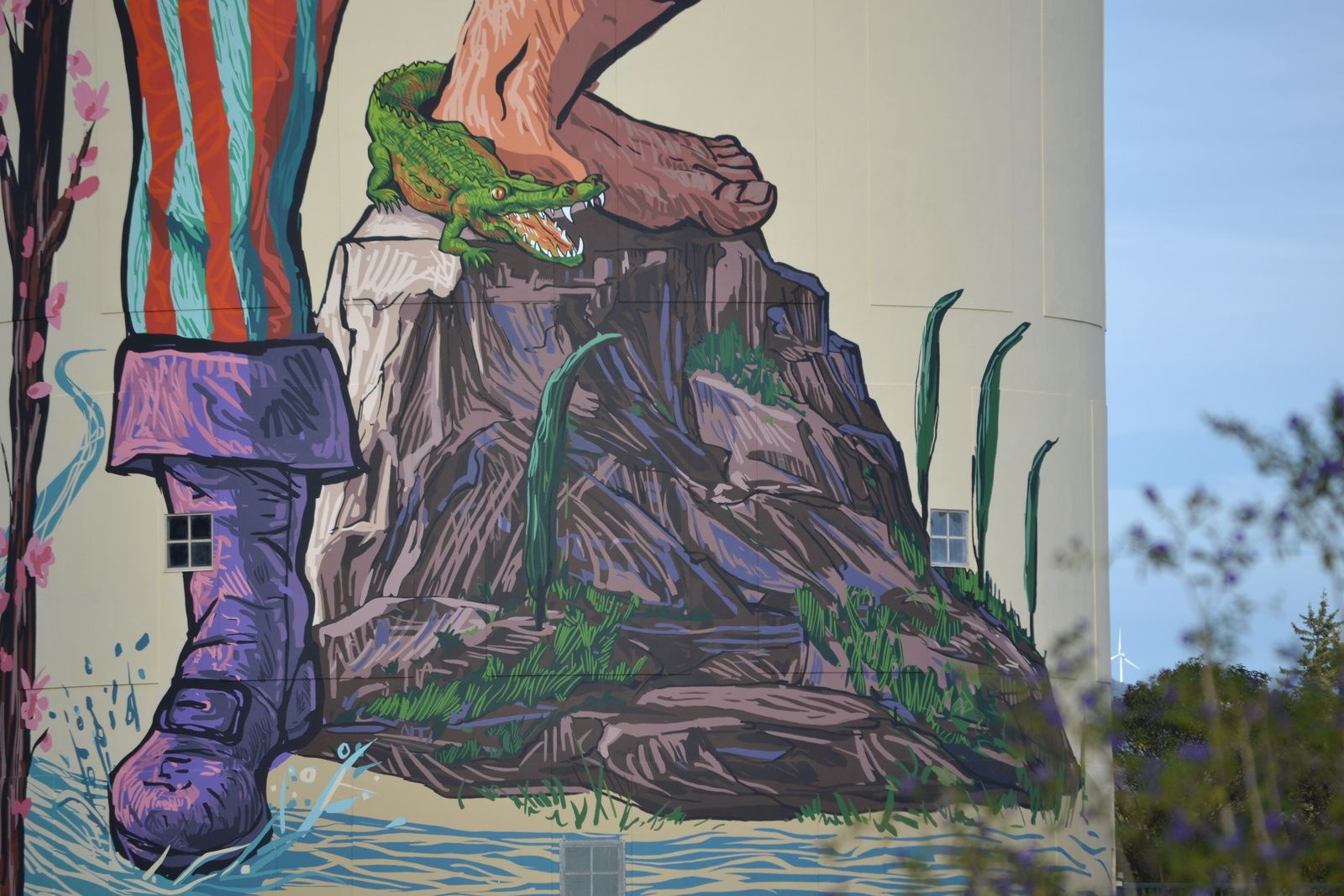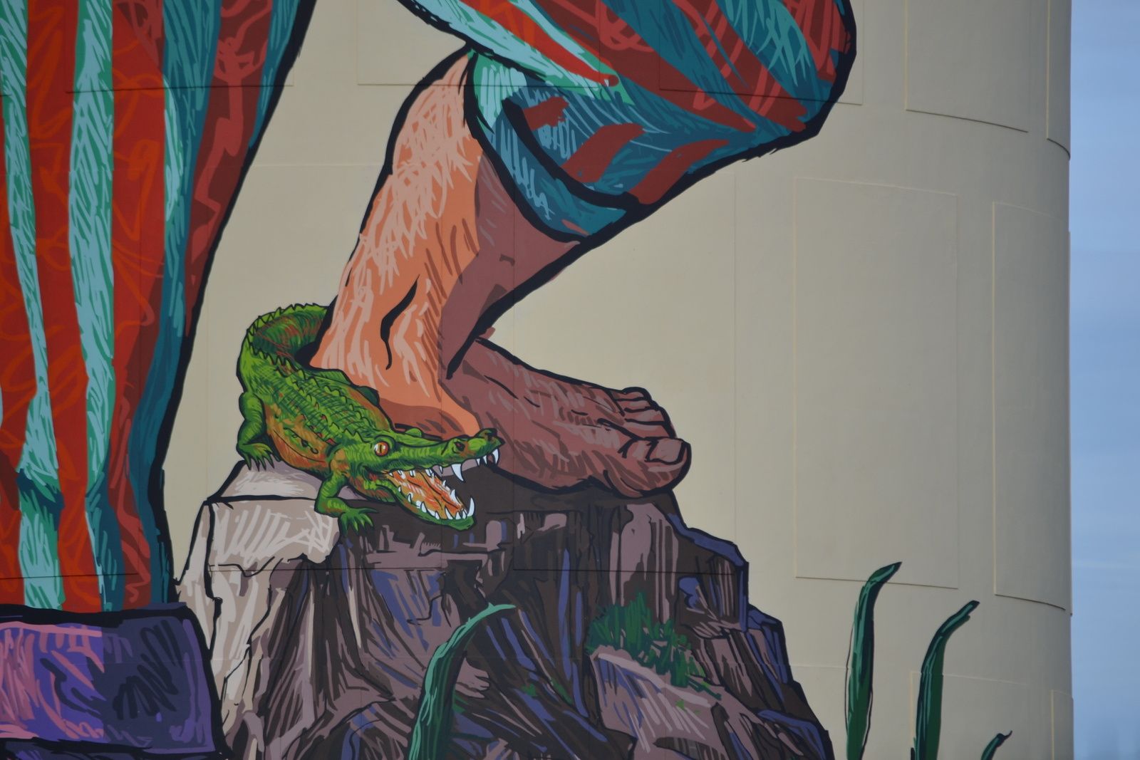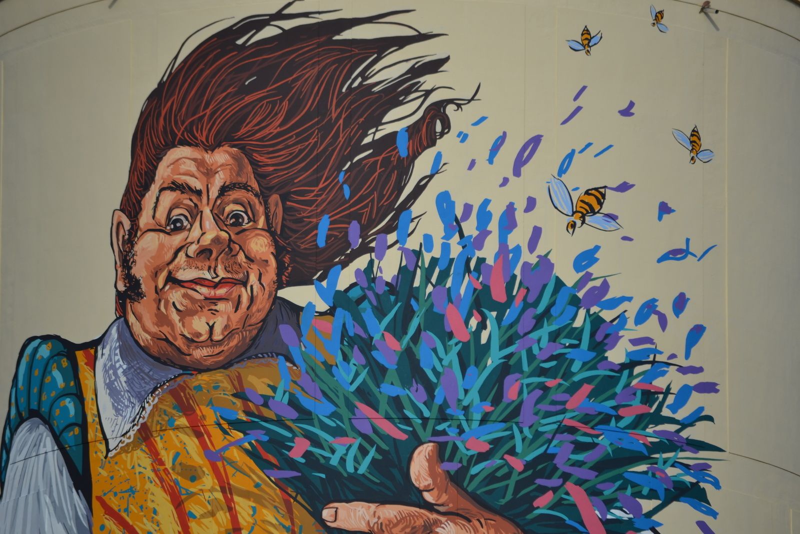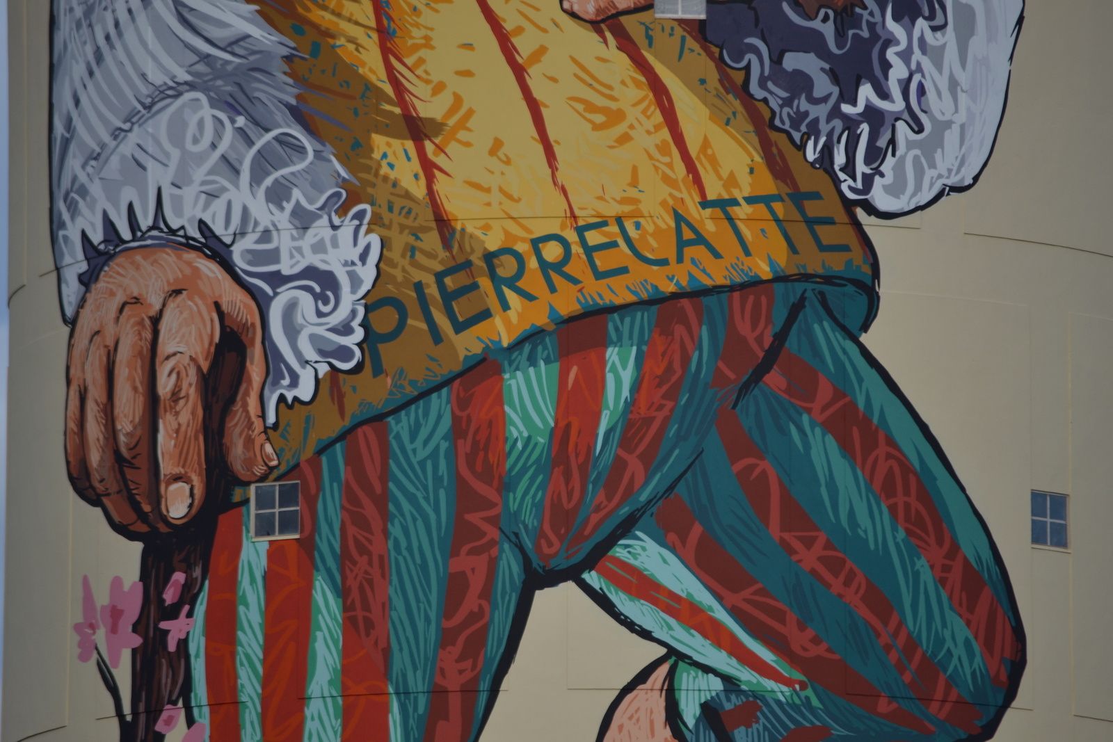 (01/11/2017) La fresque est terminée, les artistes peintres sont partis, l'échafaudage est démonté, il est là dans toute sa splendeur, ne reste plus qu'a connaître l'histoire de ce géant...histoire de ce géant détournée et prise en compte par la ville de Pierrelatte pour créer la légende de ce rocher, petite colline, au centre de la ville située dans la plaine de la vallée du Rhône. Il vient au monde en réclamant à boire, ce qui lui vaut l’imposition de son nom : Gargantua (« Que (gosier) grand tu as »). L'histoire de Gargantua rapportée par "http://www.maxicours.com/se/fiche/6/9/370869.html" lien en bas de cette page.