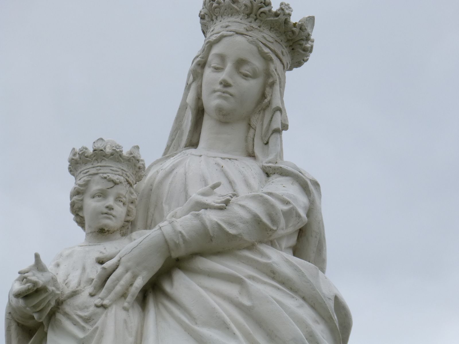 Une belle statue de la vierge et l'enfant couronnés, pas de signature de l'artiste sculpteur.