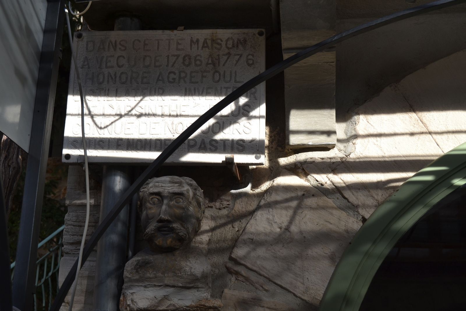"Dans cette maison a vécu de 1706 à 1776 Honoré AGREFOUL distilleur-inventeur de l'absinthe plus connue de nos jours sous le nom de "Pastis".