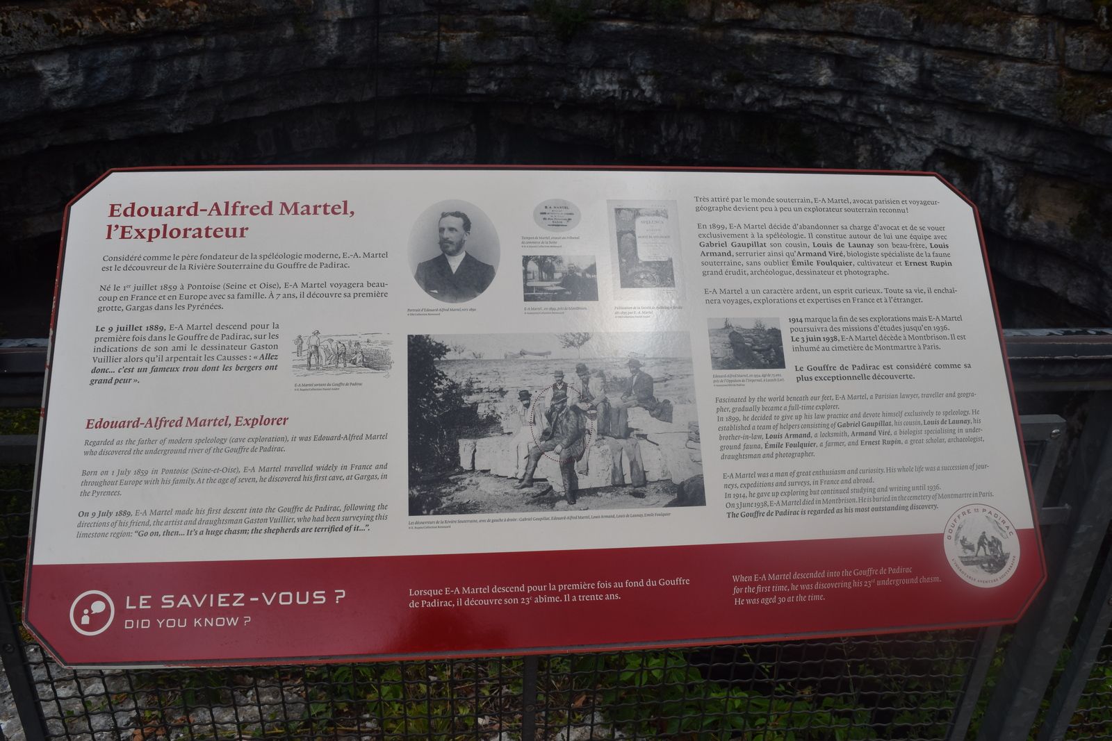 En 1889, Edouard-Alfred Martel visite le puits de Padirac, près de Rocamadour. Il y découvre une rivière souterraine, à 100 mètres de profondeur. Martel et son cousin Gaupillat partent à sa découverte avec un canot et explorent deux kilomètres de nouvelles galeries.