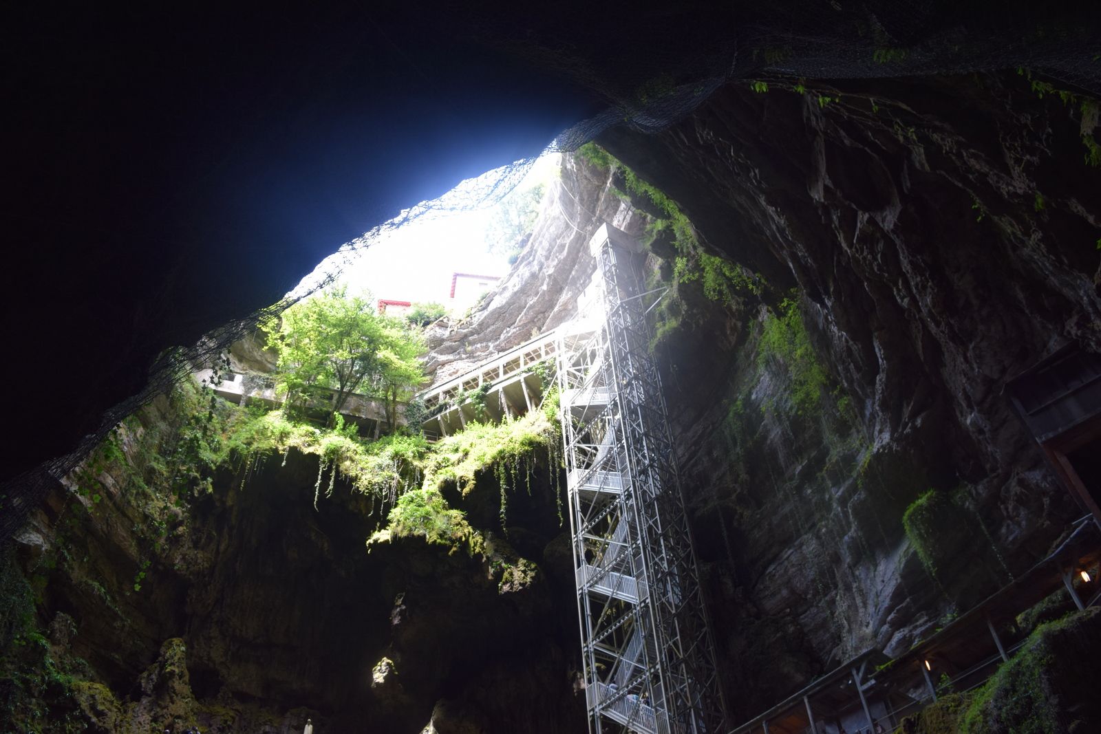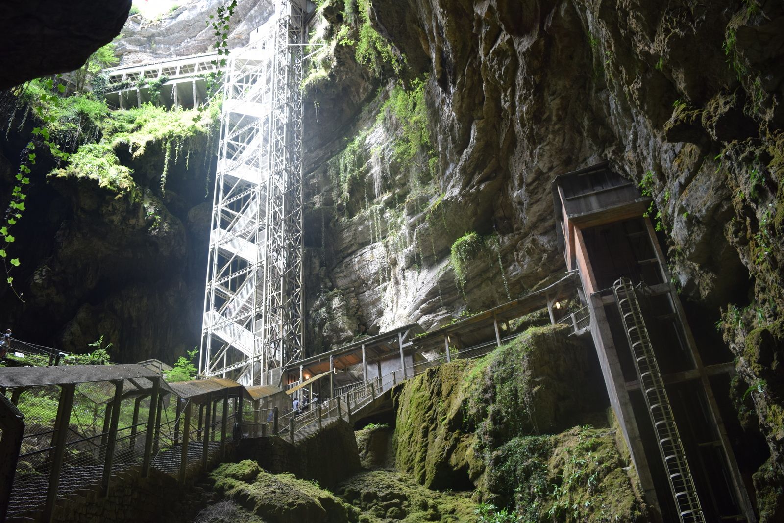 Une incroyable cavité, ce gouffre n’est autre qu’une immense porte, verticale et vertigineuse, qui nous invite à passer en quelques minutes du monde extérieur au monde souterrain.
