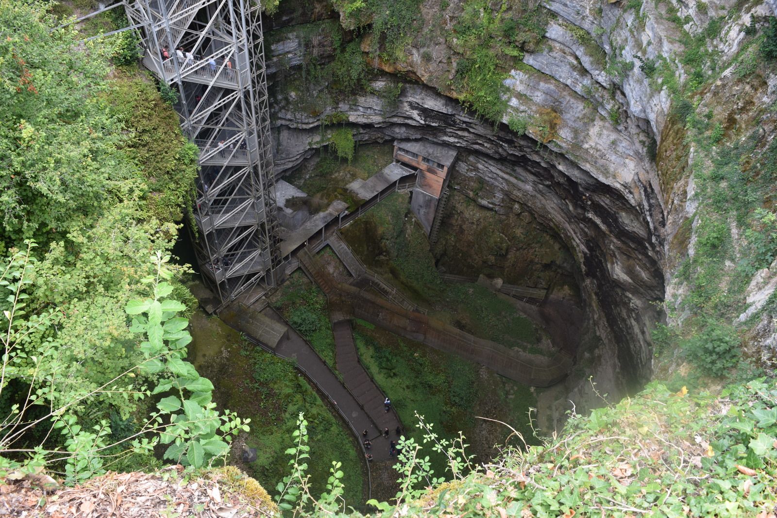 Peu à peu, la voûte d’une ancienne salle souterraine, creusée grâce aux circulations d’eau dans le massif rocheux, essentiellement calcaire, s’est effondrée et a laissé ce trou béant...